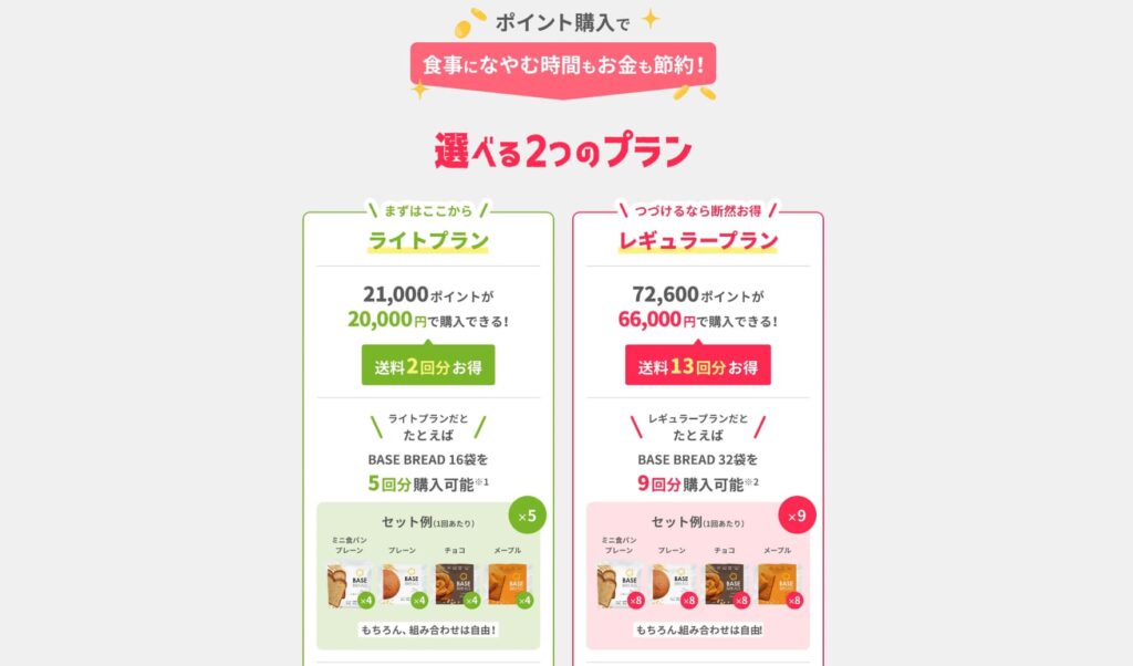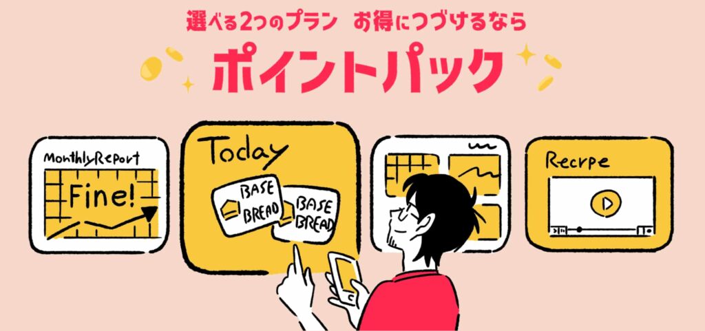 ポイントパックは、事前にベースフードで使えるポイントをまとめて購入しておき、そのポイントを日々の支払いに充てる仕組みです。