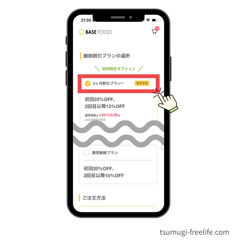 今回は、「3ヶ月継続プラン」で進めます。1回だけの購入予定なら、「通常プラン」を選んでくださいね!