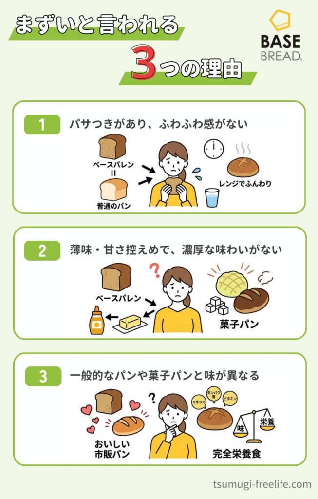 3つ目は、市販のパンのおいしさと想像してしまい、期待していた味と実際の味のイメージが異なり、まずいと感じてしまうパターン。