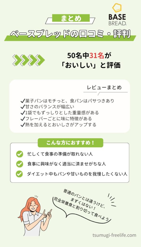 まとめ|ベースブレッドは時短と栄養を両立したい人の強い味方