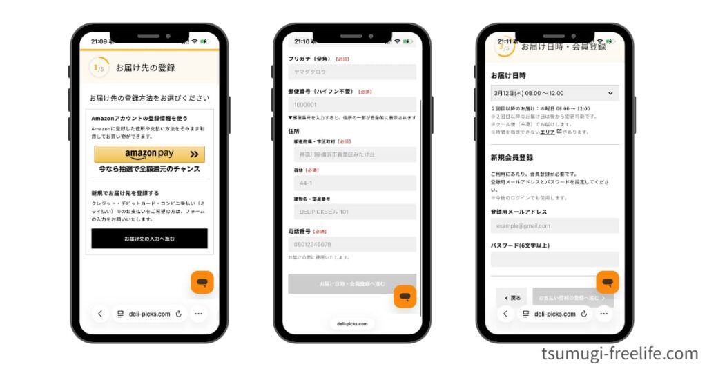 お届け日時・会員登録
