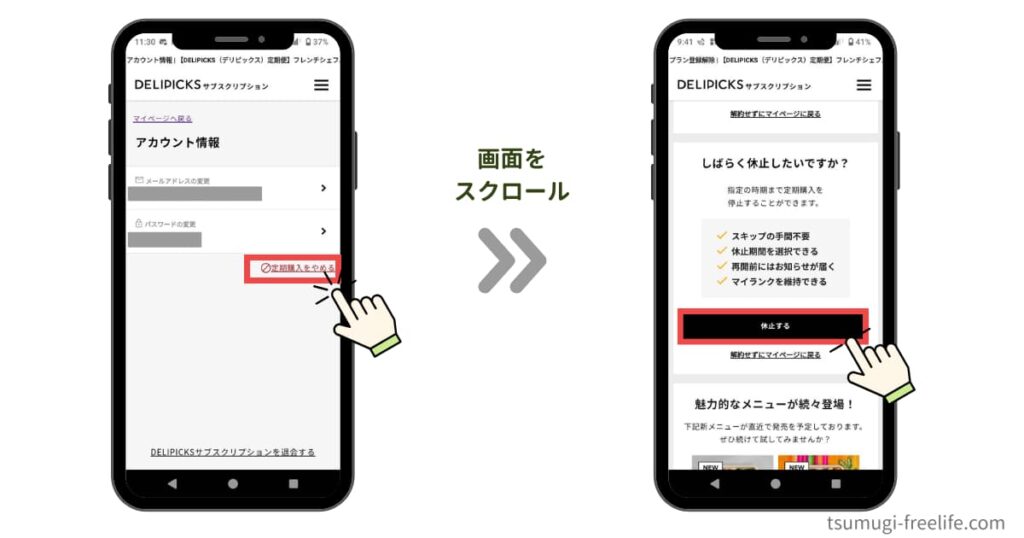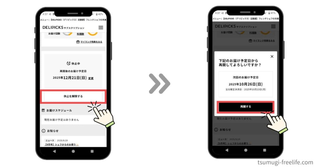 再開したい時はマイページから簡単操作で、すぐに元の状態に戻せるのがポイント。