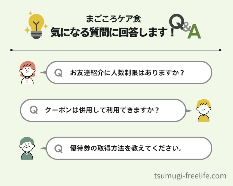 最後に、まごころケア食のクーポンやキャンペーンについて気になる疑問に回答します。