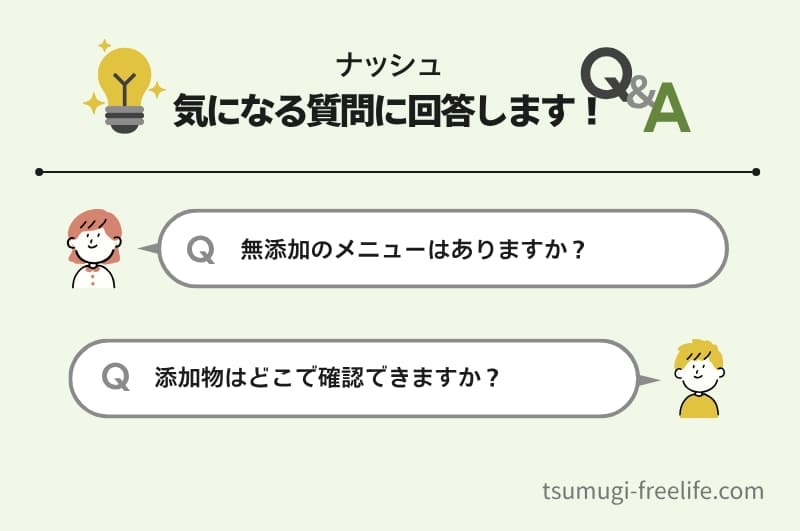 最後に、ナッシュの添加物に関しての疑問を、Q&A形式でまとめたので、ぜひ参考にしてくださいね。