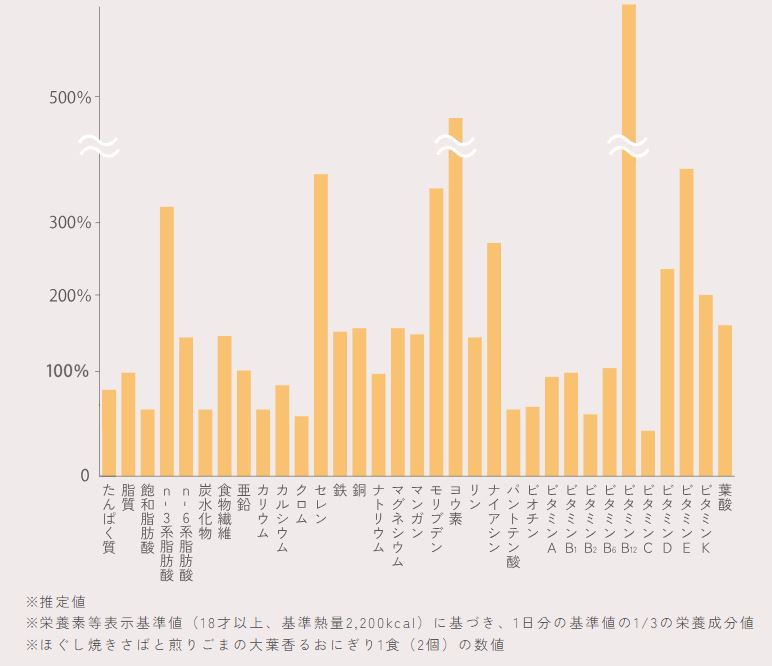 - おにぎり1個で30種類以上の栄養素が摂れる完全食