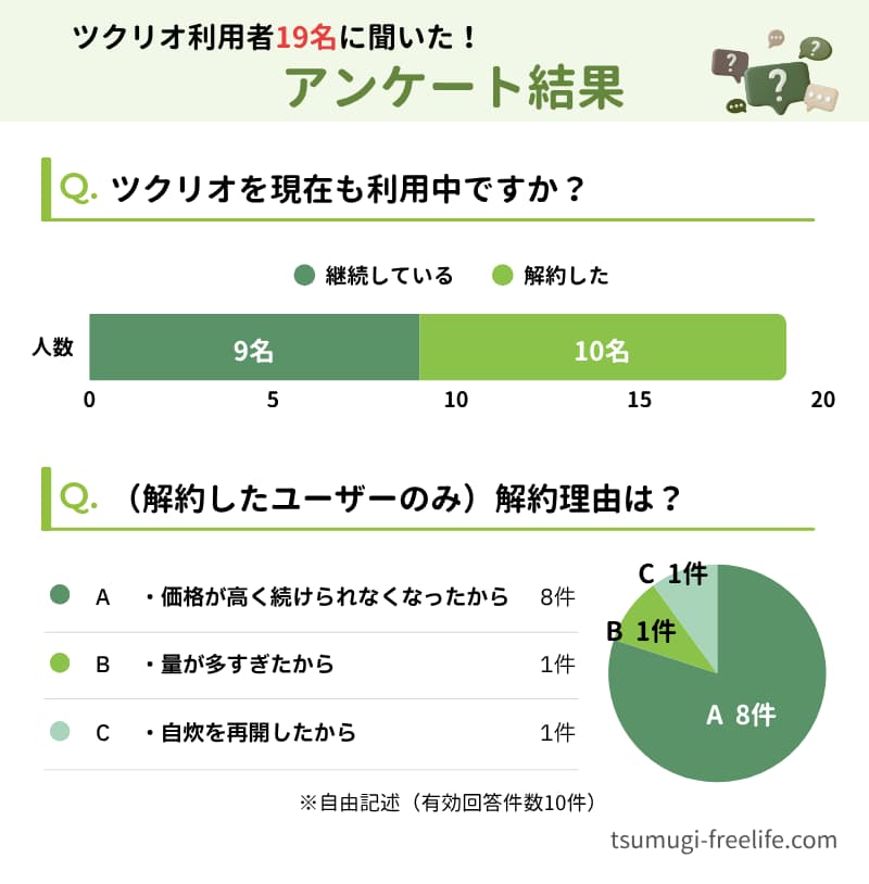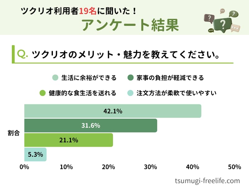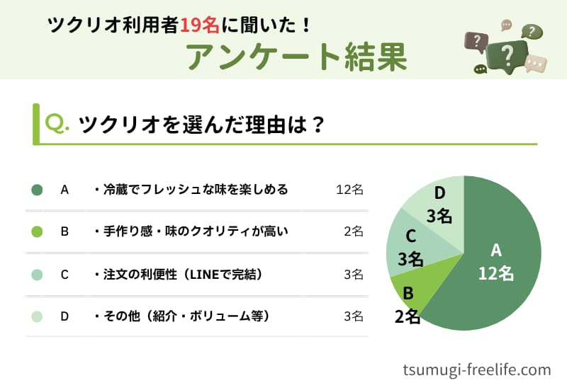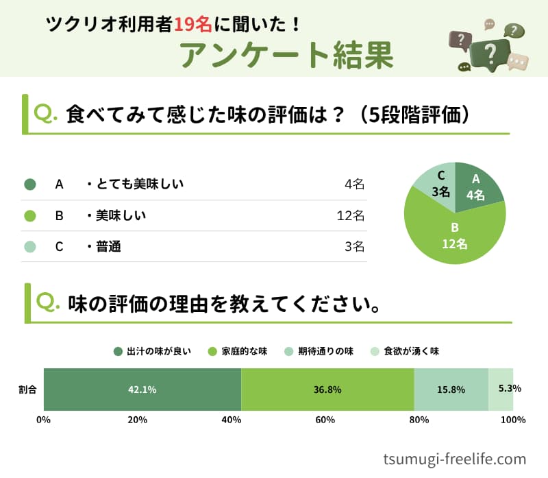 さらに、ツクリオの利用歴がある一人暮らしのユーザー19名に独自アンケートを実施。