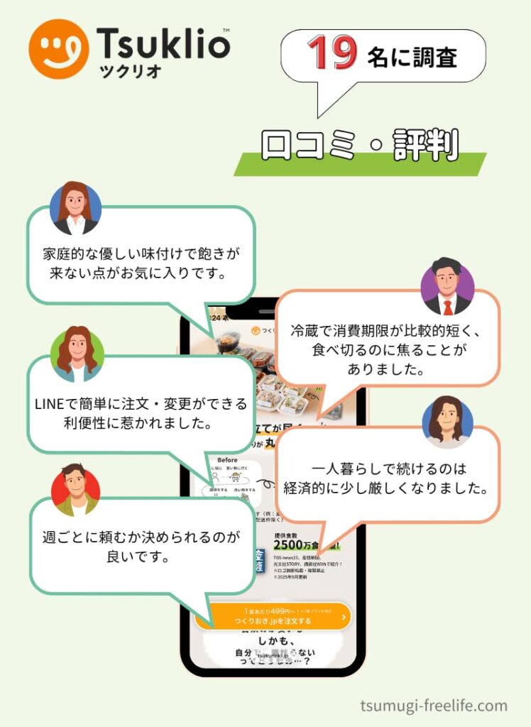 - 一人暮らしユーザー19名に聞いたツクリオ(旧:つくりおき.jp)の口コミ・評判