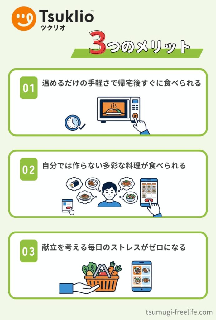 これまで、ツクリオを実際に利用しているユーザーの口コミ・評判や実食レビュー、メリット・デメリットをお伝えしてきました。