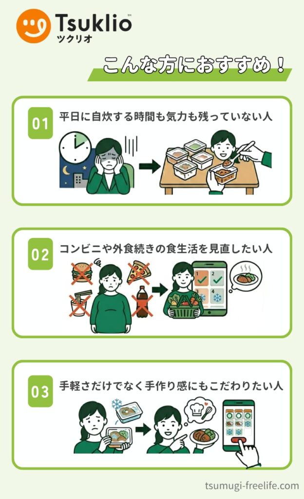 ここでは、ツクリオがどのような一人暮らしの方におすすめできるのかを紹介します。