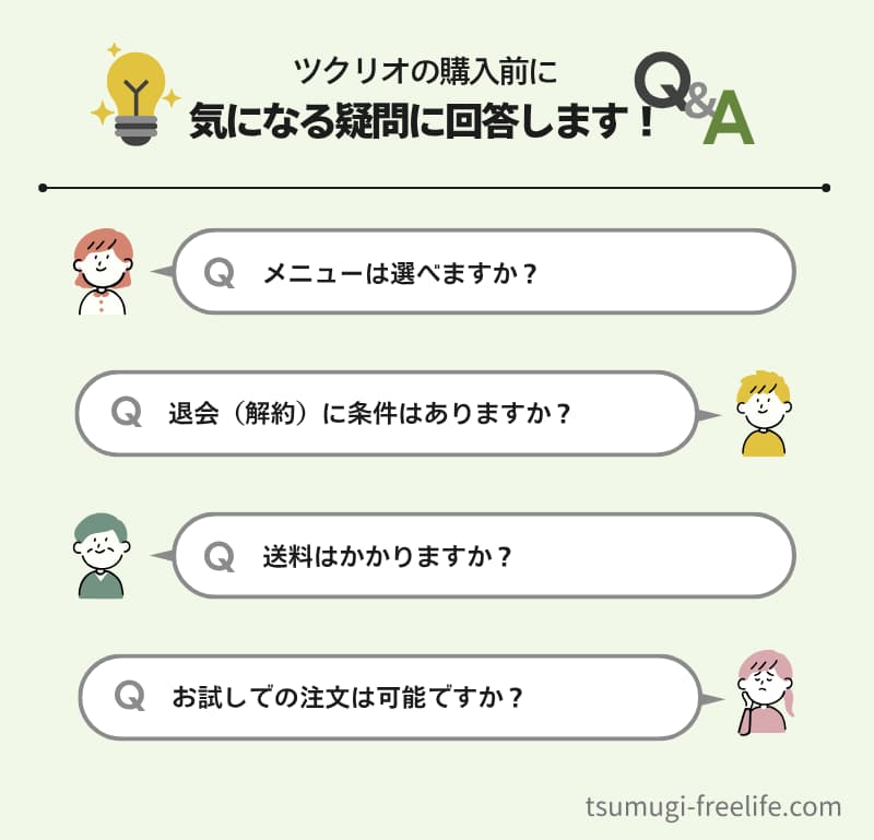 ツクリオ(旧:つくりおき.jp)に関する気になる質問