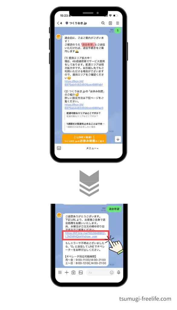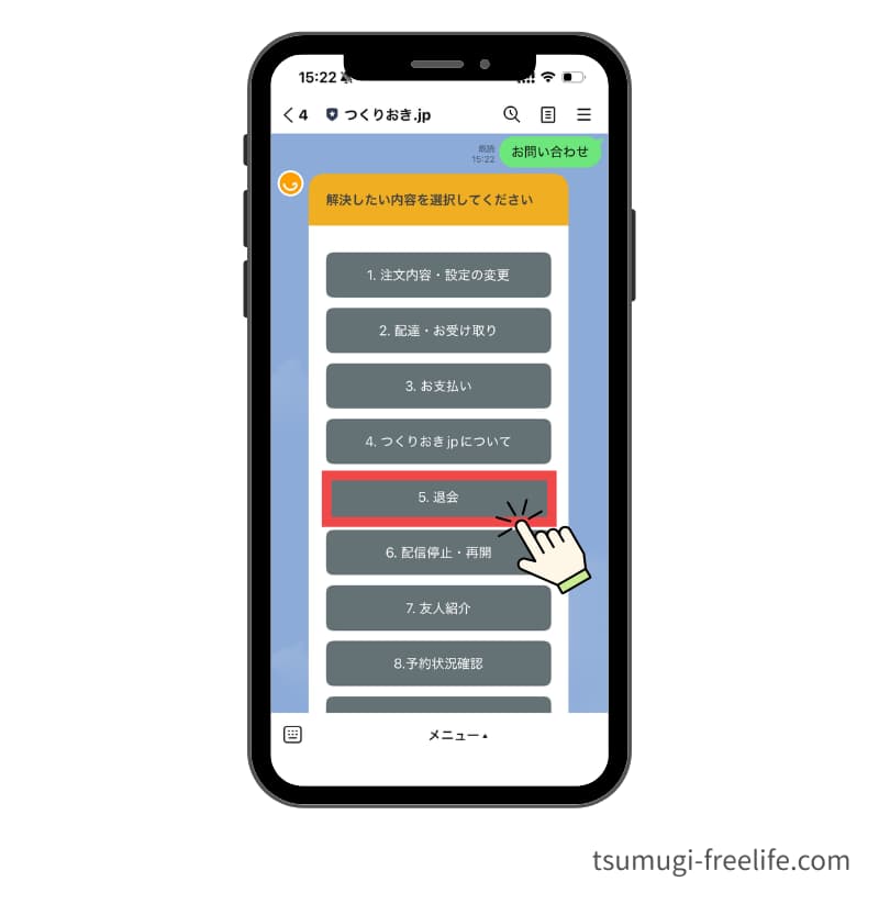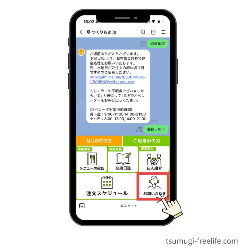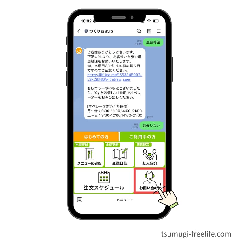 つくりおき.jpの退会(解約)はLINEで完結!電話やめんどうな手続きは一切不要。スマホで1分で終わります。