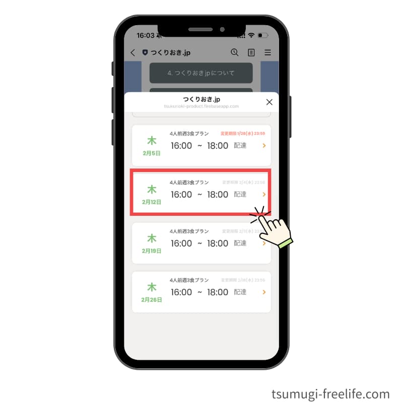 今回は2/12週のみ選択しましたが、2/5週、2/12週、2/19週、2/26週の4週スキップ可能です!