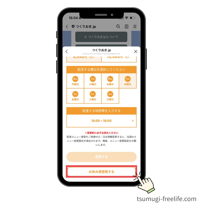 ただし、お届け前週の水曜日23:59までに手続きする必要があります。