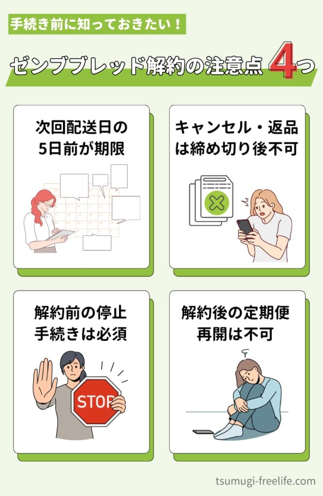 手続き前に知っておきたい!ゼンブブレッド解約・停止・スキップの注意点4つ