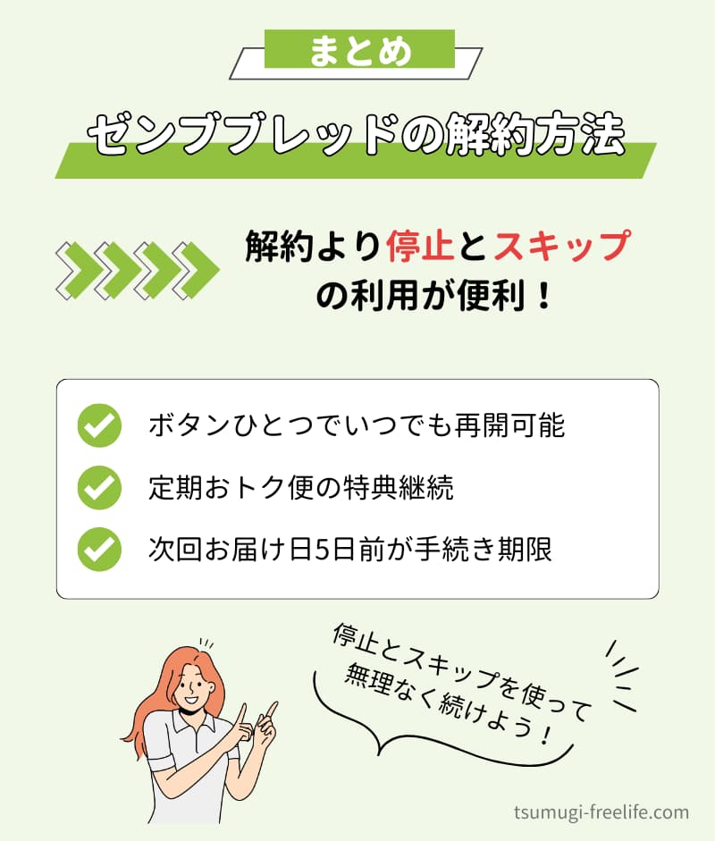 まとめ|手続き期限は5日前まで!ゼンブブレッドは解約より停止とスキップが安心