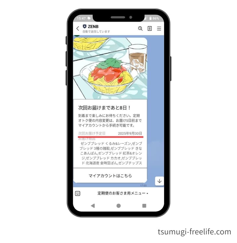 ご自身のライフスタイルに合わせて便利なスキップや停止機能を使いこなし、無理なく続けて、ゼンブブレッドのある生活を楽しみましょう!