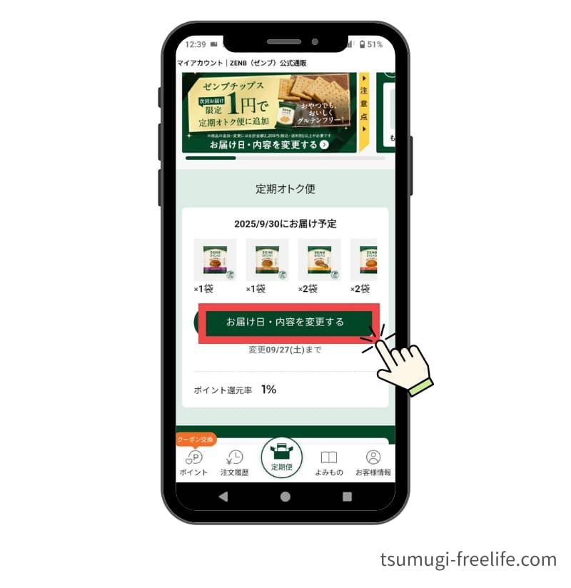 所要時間たったの1分で、次回のお届け予定日が自動的に更新されます。
