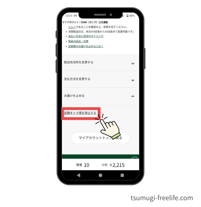 マイアカウントに「定期オトク便を解約する」のボタンがあれば、手続きは簡単です。