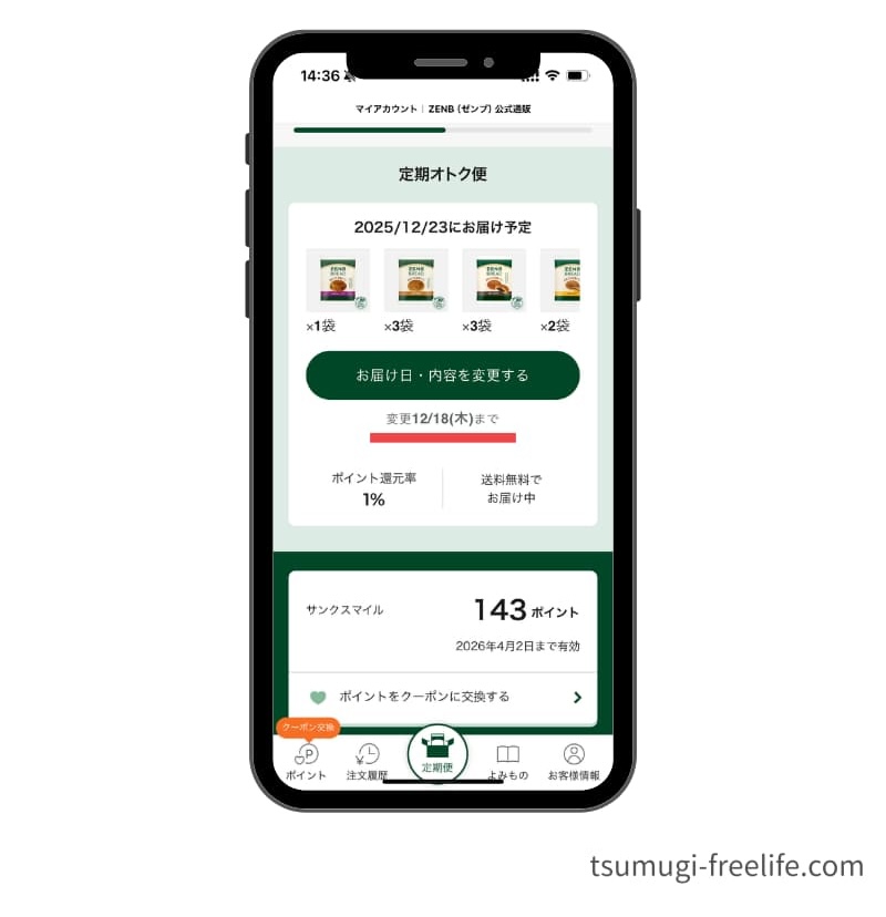 もし、今日がその5日前を過ぎてしまっていると次回の配送はストップできません。