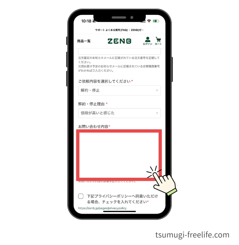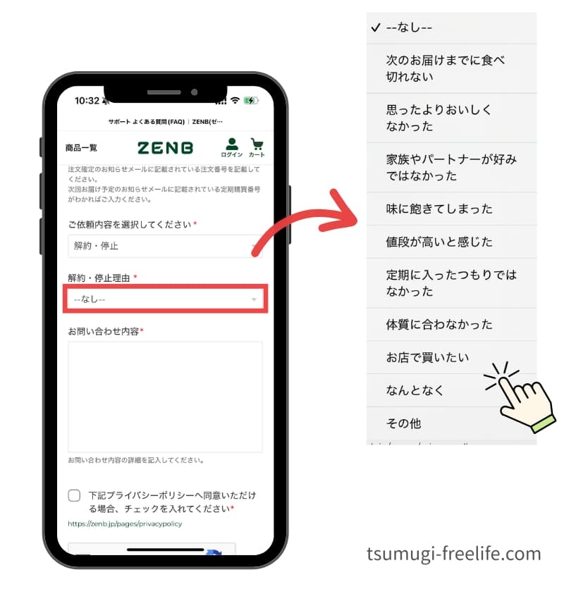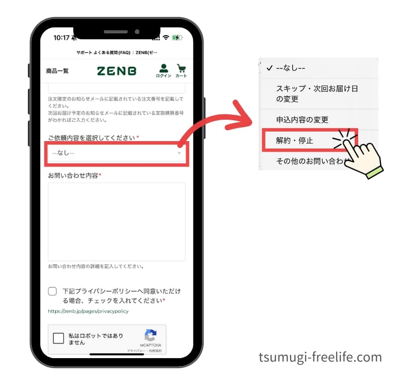 配送を停止できたら、お問い合わせフォームから解約の連絡をします。
