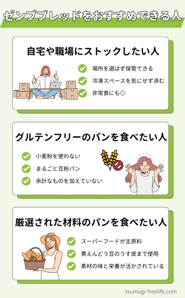 自宅や職場で、いつでもパンが食べられる状態にしておきたい人には、ゼンブブレッドが最適です。