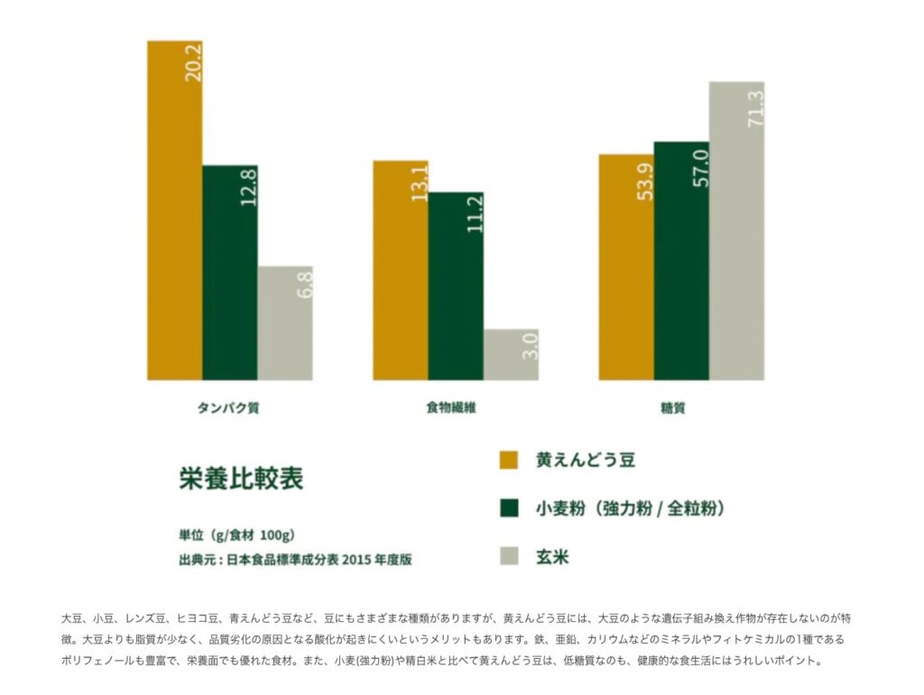 さらに、黄えんどう豆には大豆のように遺伝子組み換え品種がなく、以下の特徴があります。